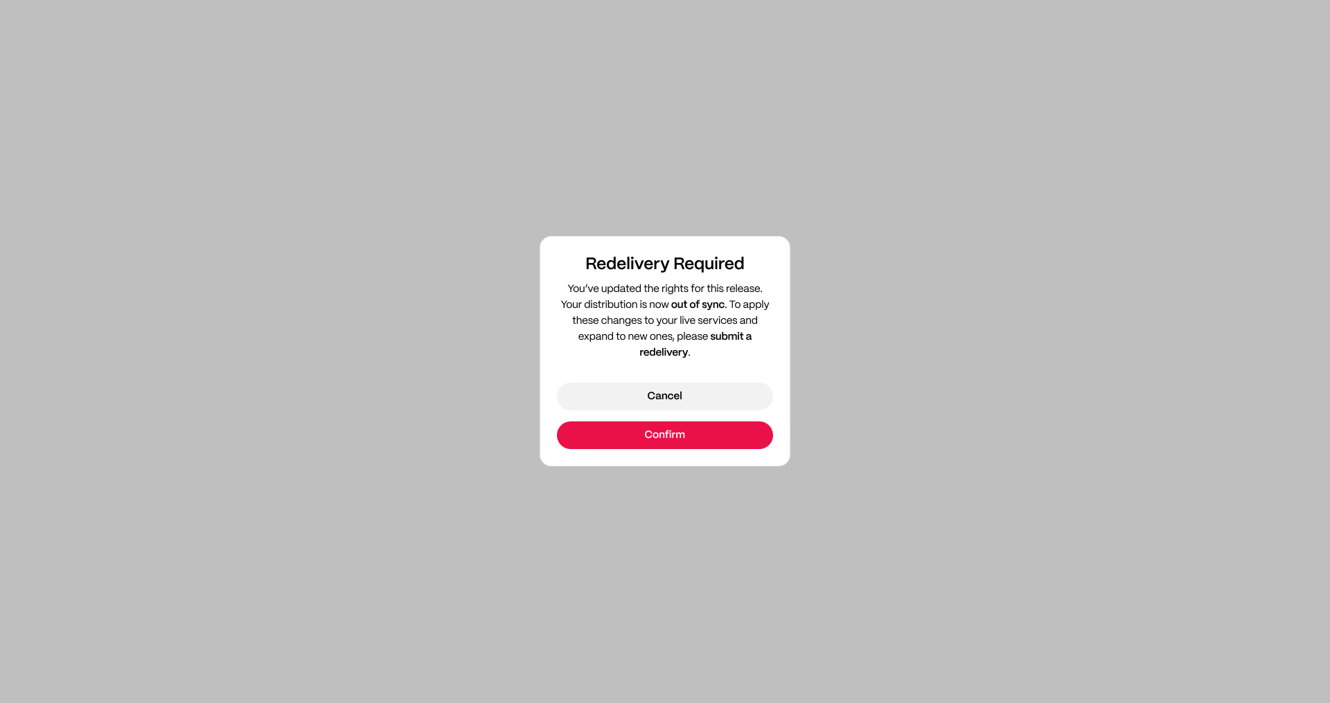 - If you update Release Rights after distributing, the system will show that your distribution is out of sync.